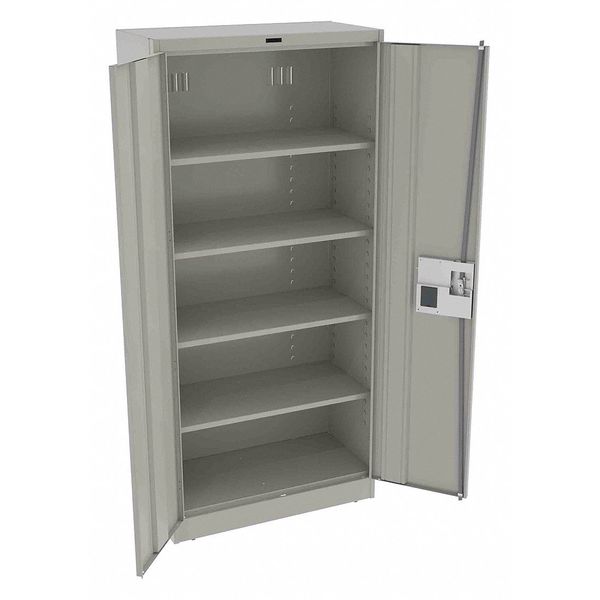 SKU G2175936CategoriesDescription Storage Cabinet, Base Type Leveling, Body Panel Type Solid, Cabinet Color Light Gray, Cabinet Material Steel, Cabinet Storage Components Shelves, Door Handle Type Recessed Pull, Door Type Solid, Duty Rating Light Duty, For Use Indoors/Outdoors No, Frame Assembled Assembled, Load Capacity per Shelf 200 lb, Lock Type Electronic Keypad, Mobility Stationary, Mounting Location Freestanding, Number of Shelves 4, Overall Depth 18 in, Overall Height 78 in, Overall Width 36 ingraingerSKU: 39FR83, mscSKU: , zoro_no: G2175936, mongo_id: 65bbe80f9a749db82276efb3