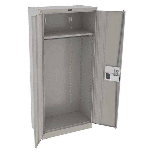 SKU G2175881CategoriesDescription Storage Cabinet, Base Type Leveling, Body Panel Type Solid, Cabinet Color Light Gray, Cabinet Material Steel, Cabinet Storage Components Hanging Rods, Shelves, Door Handle Type Recessed Pull, Door Type Solid, Duty Rating Medium Duty, For Use Indoors/Outdoors No, Frame Assembled Assembled, Load Capacity per Shelf 150 lb, Lock Type Electronic Keypad, Mobility Stationary, Mounting Location Freestanding, Number of Shelves 1, Overall Depth 18 in, Overall Height 78 in, Overall Width 36 ingraingerSKU: 39FR88, mscSKU: , zoro_no: G2175881, mongo_id: 65bbe7be3aaddbd5a90b2090