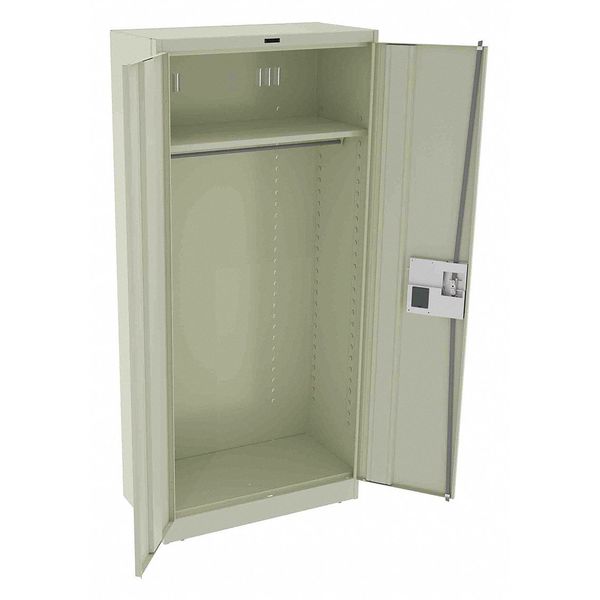 SKU G2175866CategoriesDescription Storage Cabinet, Base Type Leveling, Body Panel Type Solid, Cabinet Color Putty, Cabinet Material Steel, Cabinet Storage Components Hanging Rods, Shelves, Door Handle Type Recessed Pull, Door Type Solid, Duty Rating Medium Duty, For Use Indoors/Outdoors No, Frame Assembled Assembled, Load Capacity per Shelf 150 lb, Lock Type Electronic Keypad, Mobility Stationary, Mounting Location Freestanding, Number of Shelves 1, Overall Depth 18 in, Overall Height 78 in, Overall Width 36 ingraingerSKU: 39FR90, mscSKU: , zoro_no: G2175866, mongo_id: 65bbea2f22d7a989a999bd6b