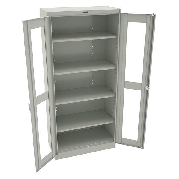 SKU G2120846CategoriesDescription Storage Cabinet, Base Type Leveling, Body Panel Type Solid, Cabinet Color Light Gray, Cabinet Material Steel, Cabinet Storage Components Shelves, Door Handle Type Swing, Door Type Clearview, Duty Rating Light Duty, For Use Indoors/Outdoors No, Frame Assembled Unassembled, Load Capacity per Shelf 200 lb, Lock Type Keyed, Mobility Stationary, Mounting Location Freestanding, Number of Shelves 4, Overall Depth 18 in, Overall Height 78 in, Overall Width 36 in, Audit Trail Storage NonegraingerSKU: 8DZW6, mscSKU: , zoro_no: G2120846, mongo_id: 65bbe74c3aaddbd5a9086fa4