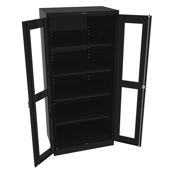 SKU G2115009CategoriesDescription Storage Cabinet, Base Type Leveling, Body Panel Type Solid, Cabinet Color Black, Cabinet Material Steel, Cabinet Storage Components Shelves, Door Handle Type Swing, Door Type Clearview, Duty Rating Medium Duty, For Use Indoors/Outdoors No, Frame Assembled Unassembled, Load Capacity per Shelf 200 lb, Lock Type Keyed, Mobility Stationary, Mounting Location Freestanding, Number of Shelves 4, Overall Depth 24 in, Overall Height 78 in, Overall Width 36 in, Audit Trail Storage NonegraingerSKU: 9EWH3, mscSKU: , zoro_no: G2115009, mongo_id: 65bbe7649a749db822735bf1