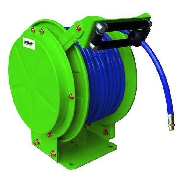 SKU G3509721CategoriesDescription Spring Return Hose Reel, Air, Water, 300 psi, Hose Capacity 50 ft (3/8 in I.D.), Drive Type Spring Return, Enclosed No, Includes Hose Yes, Hose Inside Dia. 3/8 in, Hose Length 50 ft, Reel Material Steel, Mounting Location Ceiling, Floor, Wall, Speed Limited Retraction No, Overall Height 22 in, Overall Length 20 in, Overall Width 9 in, Corrosion-Resistant Yes, For Dual Hose No, Hose Color Red, Hose Cover Material Rubber, Hose Fitting A Gender MalegraingerSKU: 4UKX5, mscSKU: , zoro_no: G3509721, mongo_id: 65bbe98022d7a989a995c8b8