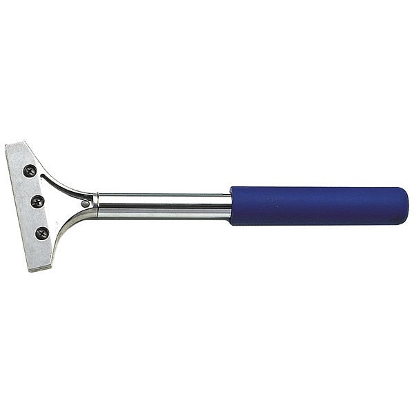 Description Scrapers, Nonsparking No, Stiff, Blade Type Standard, Blade Width 4 in, Blade Material Carbon Steel, Handle Material Steel/Foam Grip, Angled Floor Scraper, Blade Length 2 in, Handle Length 12 in, Color Blue/Silver, Handle Design Cushion Grip, No. of Edges 1, Overall Length 13 in