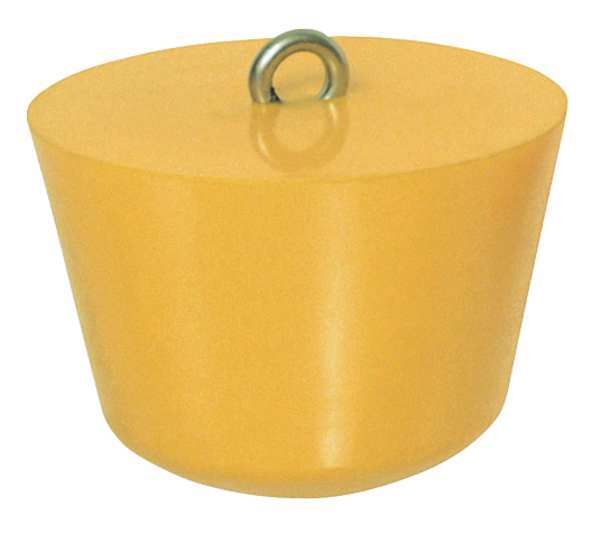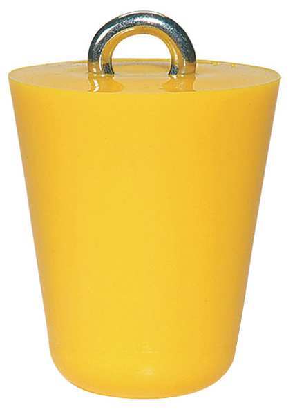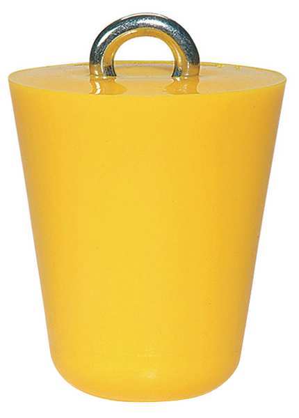Description Drain Plug, Color Yellow, Diameter At Top 2 1/2 in, Fits Drain Dia. 2 in, Handle Material Metal, Handle Type Eye Bolt, Height 5 in, Plug Material Polyurethane, Product Weight 1.3 lb, Series PLR