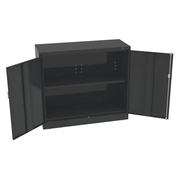 SKU G2120861CategoriesDescription Storage Cabinet, Base Type Leveling, Body Panel Type Solid, Cabinet Color Black, Cabinet Material Steel, Cabinet Storage Components Shelves, Door Handle Type Swing, Door Type Solid, Duty Rating Medium Duty, For Use Indoors/Outdoors No, Frame Assembled Assembled, Load Capacity per Shelf 400 lb, Lock Type Keyed, Mobility Stationary, Mounting Location Freestanding, Number of Shelves 2, Overall Depth 18 in, Overall Height 42 in, Overall Width 48 in, Audit Trail Storage NonegraingerSKU: null, mscSKU: null, zoro_no: G2120861, mongo_id: 65bbe5f23aaddbd5a9ff7ab8