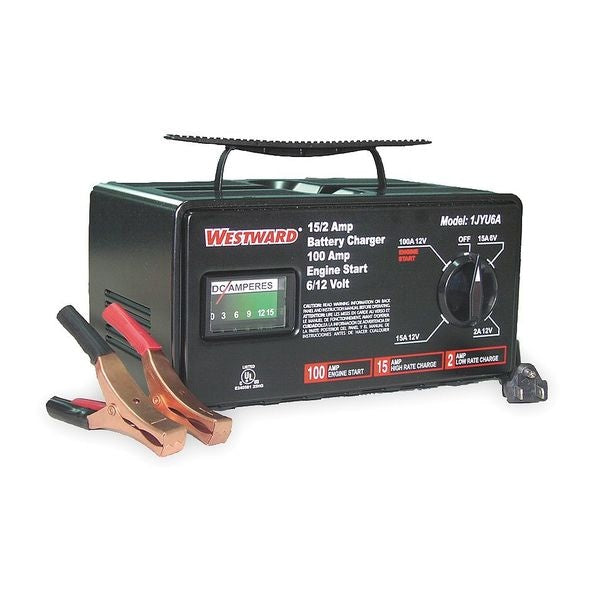 SKU G1401881CategoriesDescription Battery Charger, Charger Style Benchtop, For Use With Battery Type AGM, Deep Cycle, Lead Acid, Automatic/Manual Automatic, For Battery Voltage 6 V DC, 12 V DC, Boost Current @ Voltage 100 A @ 12V, Charging Current @ Voltage 15 A @ 12V, 15 A @ 6V, Maintaining Current @ Voltage 2 A @ 12V, Cable Length 6 ft, Charge Type Auto On/Off, Charger Function Boosting, Charging, Indoor or Outdoor Use Indoor, Input Current 2.2 A, Input Voltage 120V AC, Overall Depth 6 1/2 in, Overall Height 5 ingraingerSKU: 1JYU9, mscSKU: , zoro_no: G1401881, mongo_id: 65bbe84c22d7a989a98eaa35