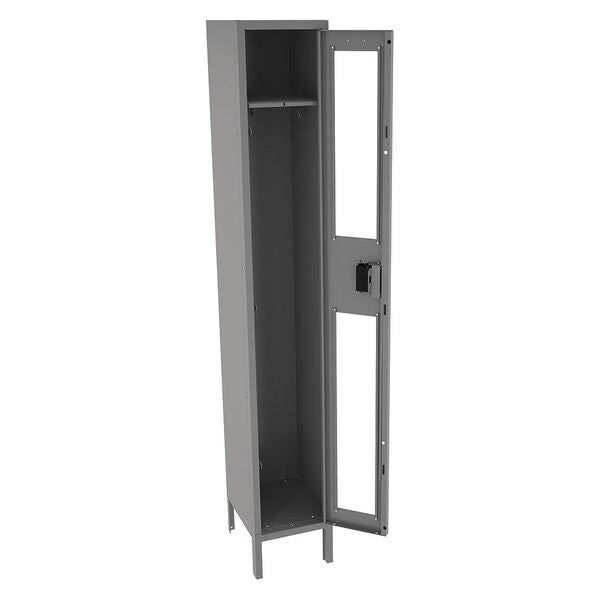 Description Wardrobe Locker, Audit Trail Storage None, Frame Assembled Assembled, Number of Tiers 1, Number of Units Wide 1, Door Type Clearview, Frame Material Thickness 16 ga, Includes Number Plates Yes, Locker Color Medium Gray, Lock Type Padlock Hasp, Overall Depth 15 in, Overall Height 78 in, Overall Width 12 in, Door Locking Points 3, Handle Type Recessed Lift, Includes ID Plate, Includes Hanging Rod No, Locker Finish Powder Coated, Locker Material Steel, Opening Depth 15 in, Opening Height 72 in