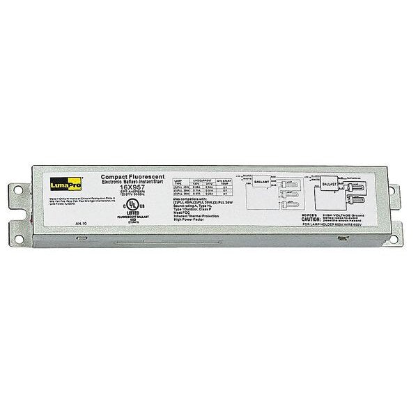 Description LumaPro(R), Electronic, CFL Ballast, Ballast Start Type Instant, Input Voltage 120 to 277V AC, Number of Bulbs Supported 2, 3, Max. Bulb Watts 40 W, Compact Fluorescent Ballast Bulb Type, Dimming No, Dimming Type No Dimming, Dimming Method No Dimming, Dimming Range No Dimming, CA Title 20 Compliant No, 0 Degrees F Min. Starting Temp., 194 Degrees F Max. Operating Temp., Thermal Protection Class P