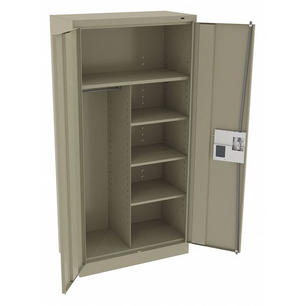 SKU G2176365Categories Raw MaterialsDescription Storage Cabinet, Base Type Frame, Body Panel Type Solid, Cabinet Color Sand, Cabinet Material Steel, Cabinet Storage Components Hanging Rods, Shelves, Door Handle Type Recessed Pull, Door Type Solid, Duty Rating Light Duty, For Use Indoors/Outdoors No, Frame Assembled Assembled, Load Capacity per Shelf 150 lb, Lock Type Electronic Keypad, Mobility Stationary, Mounting Location Freestanding, Number of Shelves 5, Overall Depth 18 in, Overall Height 72 in, Overall Width 36 ingraingerSKU: null, mscSKU: null, zoro_no: G2176365, mongo_id: 65bbe67a3aaddbd5a90310a0