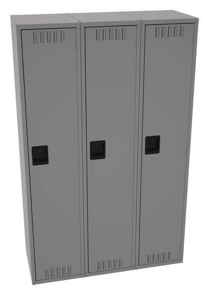 Wardrobe Locker, 15 in W, 18 in D, 72 in H, (1) Tier, (3) Wide, Medium Gray