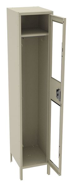 SKU G7264494CategoriesDescription Wardrobe Locker, Audit Trail Storage None, Frame Assembled Assembled, Number of Tiers 1, Number of Units Wide 1, Door Type Clearview, Frame Material Thickness 16 ga, Includes Number Plates Yes, Locker Color Tan, Lock Type Padlock Hasp, Overall Depth 15 in, Overall Height 78 in, Overall Width 15 in, Door Locking Points 3, Handle Type Recessed Lift, Includes ID Plate, Includes Hanging Rod Yes, Locker Finish Powder Coated, Locker Material Steel, Opening Depth 18 in, Opening Height 72 ingraingerSKU: 8PMN4, mscSKU: , zoro_no: G7264494, mongo_id: 65bbe5cc3aaddbd5a9fe8658