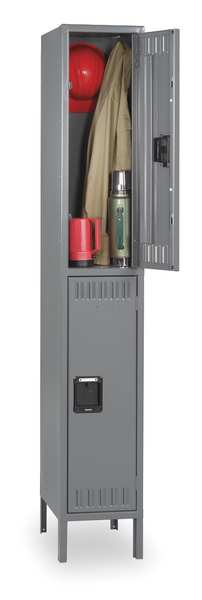 SKU G0152218CategoriesDescription Wardrobe Locker, Audit Trail Storage None, Frame Assembled Assembled, Number of Tiers 2, Number of Units Wide 1, Door Type Louvered, Frame Material Thickness 16 ga, Includes Number Plates Yes, Locker Color Medium Gray, Lock Type Padlock Hasp, Overall Depth 18 in, Overall Height 60 in, Overall Width 15 in, Handle Type Recessed Lift, Locker Finish Powder Coated, Locker Material Steel, Number of Lockers 2, Opening Depth 16 7/8 in, Opening Height 28 1/4 in, Opening Width 12 5/8 ingraingerSKU: 39FP31, mscSKU: , zoro_no: G0152218, mongo_id: 65bbe83422d7a989a98e095f
