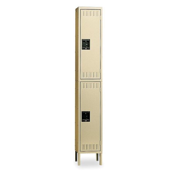 SKU G6240683CategoriesDescription Wardrobe Locker, Audit Trail Storage None, Frame Assembled Assembled, Number of Tiers 2, Number of Units Wide 1, Door Type Louvered, Frame Material Thickness 16 ga, Includes Number Plates Yes, Locker Color Tan, Lock Type Padlock Hasp, Overall Depth 18 in, Overall Height 78 in, Overall Width 15 in, Handle Type Recessed Lift, Includes ID Plate, Locker Finish Powder Coated, Locker Material Steel, Number of Lockers 2, Opening Depth 16 7/8 in, Opening Height 34 1/4 in, Opening Width 12 5/8 ingraingerSKU: , mscSKU: , zoro_no: G6240683, mongo_id: 65bbe7223aaddbd5a9077ded