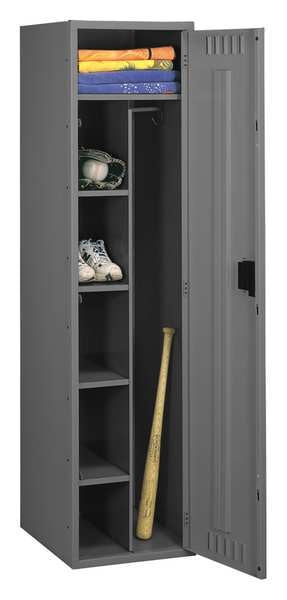SKU G2177388CategoriesDescription Wardrobe Locker, Audit Trail Storage None, Frame Assembled Assembled, Number of Tiers 1, Number of Units Wide 1, Door Type Louvered, Frame Material Thickness 16 ga, Includes Number Plates Yes, Locker Color Medium Gray, Lock Type Padlock Hasp, Overall Depth 24 in, Overall Height 78 in, Overall Width 24 in, Door Locking Points 3, Handle Type Recessed Lift, Includes Hanging Rod Yes, Locker Finish Powder Coated, Locker Material Steel, Opening Depth 22 7/8 in, Opening Height 72 ingraingerSKU: 39FM43, mscSKU: , zoro_no: G2177388, mongo_id: 65bbe80722d7a989a98d22c4