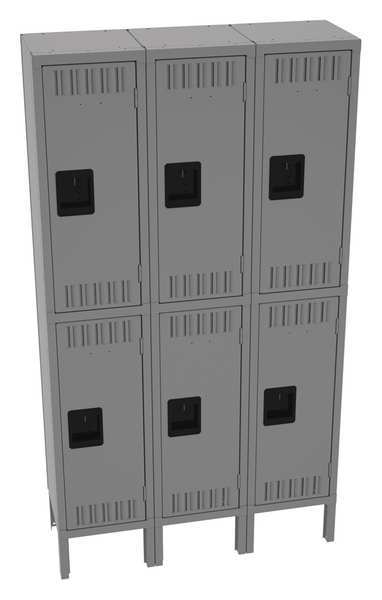 Wardrobe Locker, 36 in W, 12 in D, 66 in H, (2) Tier, (3) Wide, Medium Gray