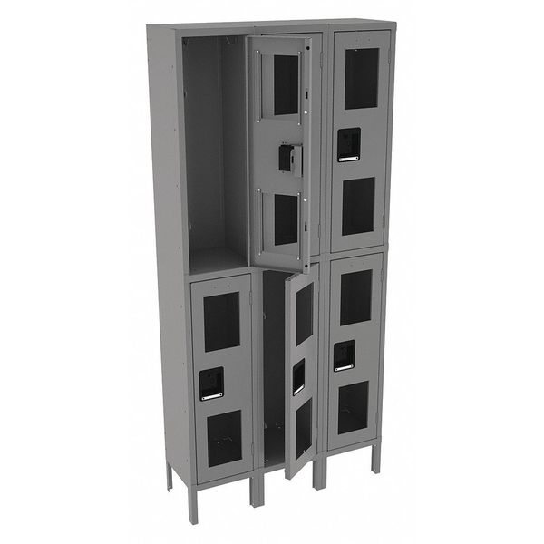 SKU G9847013CategoriesDescription Wardrobe Locker, Audit Trail Storage None, Frame Assembled Assembled, Number of Tiers 2, Number of Units Wide 3, Door Type Clearview, Frame Material Thickness 16 ga, Includes Number Plates Yes, Locker Color Gray, Lock Type Padlock Hasp, Overall Depth 12 in, Overall Height 78 in, Overall Width 36 in, Handle Type Recessed Lift, Includes ID Plate, Locker Finish Powder Coated, Locker Material Steel, Number of Lockers 6, Opening Depth 10 7/8 in, Opening Height 34 1/4 in, Opening Width 9 5/8 ingraingerSKU: 8NMX7, mscSKU: , zoro_no: G9847013, mongo_id: 65bbee06526e052139ae590a