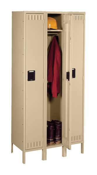 $937.49 / eachWeb priceWardrobe Locker, 36 in W, 12 in D, 66 in H, (2) Tier, (3) Wide, SandSKU G2177126CategoriesDescription Wardrobe Locker, Audit Trail Storage None, Frame Assembled Assembled, Number of Tiers 2, Number of Units Wide 3, Door Type Louvered, Frame Material Thickness 16 ga, Includes Number Plates Yes, Locker Color Tan, Lock Type Padlock Hasp, Overall Depth 12 in, Overall Height 66 in, Overall Width 36 in, Handle Type Recessed Lift, Locker Finish Powder Coated, Locker Material Steel, Number of Lockers 6, Opening Depth 10 7/8 in, Opening Height 28 1/4 in, Opening Width 9 5/8 ingraingerSKU: 39FP12, mscSKU: , zoro_no: G2177126, mongo_id: 65bbe94522d7a989a9944e8a