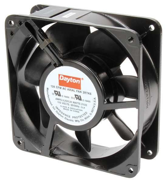 • Axial Fan, Square, 115V AC, 1 Phase, 124 cfm, 4 11/16 in W.