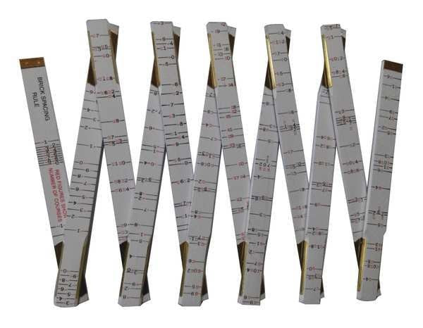 SKU G9090295CategoriesDescription Brick Mason Folding Rule, Thickness 1.81 in, Graduation Marks 1/16 in, Coating Abrasive Resistant Epoxy, Graduation Color Red, Flexibility Rigid, Graduation Mark Style Etched, Edge Style Not Applicable, Orientation Vertical, Folding Rule Type Outside Read, Backing Material Not Applicable, Finish Unfinished, System of Measurement Metric/SAE, Accuracy +/-1.4mm, Rule Type Folding Rule, Numeric Marks Inches, Millimeters, Numeric Format Fractional, Length - SAE 6 ft, Length - Metric 1,800 mmgraingerSKU: 30PC18, mscSKU: , zoro_no: G9090295, mongo_id: 65bbe7ac3aaddbd5a90ac4d7