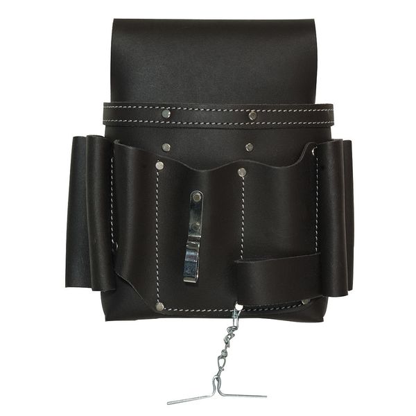 SKU G4790651CategoriesDescription Tool Pouch, Attachment Type Belt Slot, Belt Width 2 3/4 in, Closure Type Open Top, Color Brown, Compatible with Product Type Hammer, Meter Tester, Pliers, Screwdrivers, Features (1) Large Pocket, (7) Smaller Front Pockets, Leather Hammer Loop, Tape Chain, and Metal Tape Hook, For Maximum Belt Width 2 3/4 in, Material Leather, Number of Outside Pockets 8, Number of Pockets 8, Overall Depth 4 in, Overall Height 10 1/2 in, Overall Width 10 in, Primary Application General Purpose, Style Tool PouchgraingerSKU: 13T126, mscSKU: , zoro_no: G4790651, mongo_id: 65bbe73d9a749db822728992