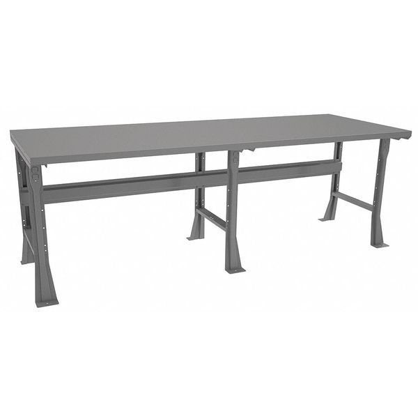 $811.24 / eachWeb priceWork Bench, Steel, 96" W, 33-1/2" Height, 4000 lb., FlaredSKU G9812564CategoriesDescription Workbench, Height Adjustability Fixed Height, Top Material Steel, Assembly Unassembled, Color Gray, Frame Material Steel, Leg Type Flared Leg, Maximum Adjustable Height Not Applicable, Minimum Adjustable Height Not Applicable, Non-Metal Top Thickness Not Applicable, Number of Cabinets 0, Number of Drawers 0, Number of Knockouts 6, Included Components Stringer, Number of Outlets 0, Number of Shelves 0, Overall Depth 30 in, Overall Fixed Height 33 1/2 in, Overall Load Capacity 4,000 lbgraingerSKU: 4TKN6, mscSKU: , zoro_no: G9812564, mongo_id: 65bbe90e22d7a989a9932385