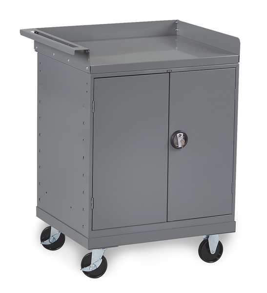 SKU G1596095CategoriesDescription Mobile Cabinet Workbench, Top Material Steel, Color Gray, Non-Metal Top Thickness Not Applicable, Number of Doors 2, Number of Drawers 0, Number of Shelves 1, Overall Depth 25 in, Overall Height 43 in, Overall Load Capacity 1,000 lb, Overall Width 33 in, Top Metal Material Gauge 16 ga, Included Components No Additional Components, Assembly Partially Assembled, Caster Type (2) Rigid, (2) Swivel, Door Type Standard/Hinged, Drawer Width 12 5/8 in, Foot Type Caster, Frame Material SteelgraingerSKU: 6YE44, mscSKU: , zoro_no: G1596095, mongo_id: 65bbea6b22d7a989a99b3710
