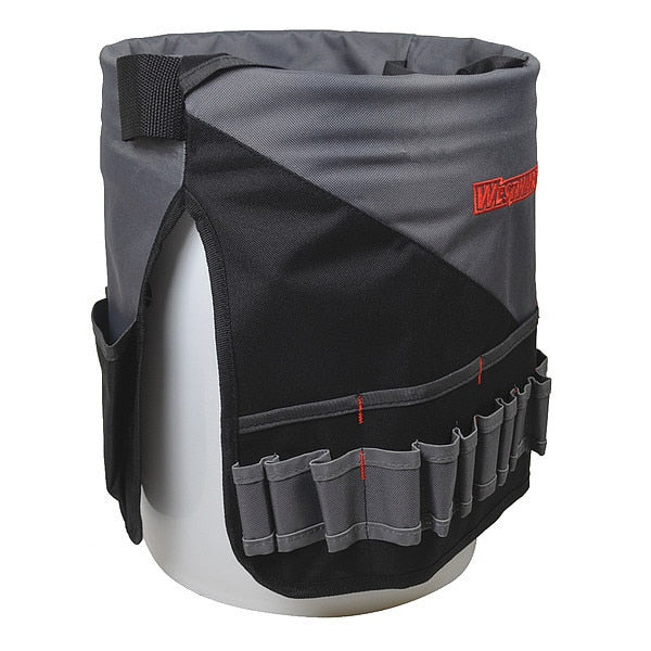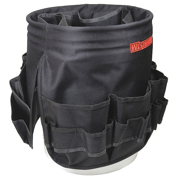 Description Bucket Tool Organizer, Color Black, For Use With 5 gal Bucket, Includes Bucket Tool Organizer, Material Polyester, Number of Compartments 0, Number of Inside Pockets 0, Number of Outside Pockets 55, Number of Pockets 55, Overall Diameter 12 11/16 in, Overall Height 21 1/2 in