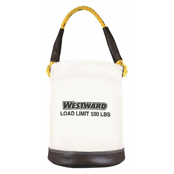 Description Bucket Bag, Bag Material Polyester, Bag Type Straight Wall, Body Color Off-White, Bottom Diameter 9 in, Closure Type Open Top, Features Finished Split Leather Bottom, Rope with Leather Handle, Attachment Type None, Includes Nails and Tapes, Material Weight 600 den, Number of Inside Pockets 0, Number of Outside Pockets 0, Number of Pockets 0, Overall Height 17 in, Overall Length 12 in, Overall Width 12 in, Reinforced Bottom Yes, Shape Round, Strap Material Polypropylene, Top Diameter 12 in