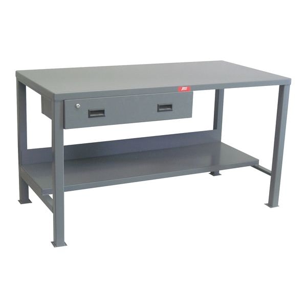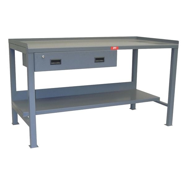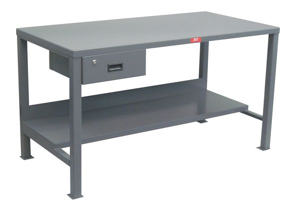 Heavy Duty Fixed Work Bench, Steel, 72" W, 34" Height, 3000 lb., StraightSKU G9830615CategoriesDescription Workbench, Height Adjustability Fixed Height, Top Material Steel, Assembly Fully Assembled, Color Gray, Frame Material Steel, Leg Type Straight Leg, Maximum Adjustable Height Not Applicable, Minimum Adjustable Height Not Applicable, Non-Metal Top Thickness Not Applicable, Number of Cabinets 0, Number of Drawers 1, Number of Knockouts 0, Included Components Back Stop, Drawers, Lower Shelf, Number of Outlets 0, Number of Shelves 2, Overall Depth 36 in, Overall Fixed Height 34 ingraingerSKU: 16A236, mscSKU: , zoro_no: G9830615, mongo_id: 65bbe93422d7a989a994093f