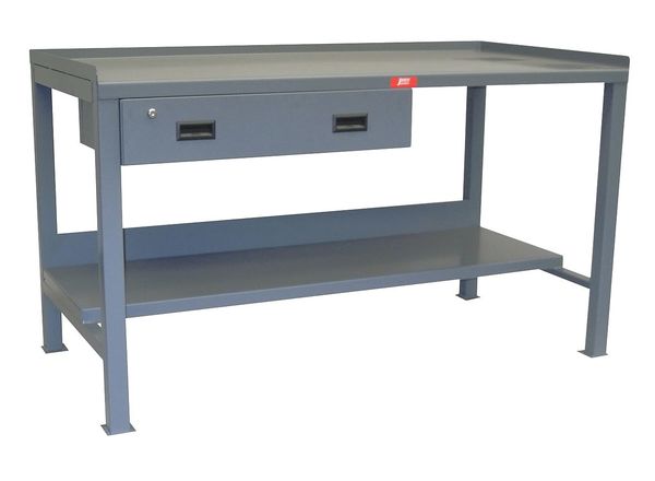Heavy Duty Fixed Work Bench, Steel, 72" W, 34" Height, 3000 lb., StraightSKU G9830737CategoriesDescription Workbench, Height Adjustability Fixed Height, Top Material Steel, Assembly Fully Assembled, Color Gray, Frame Material Steel, Leg Type Straight Leg, Maximum Adjustable Height Not Applicable, Minimum Adjustable Height Not Applicable, Non-Metal Top Thickness Not Applicable, Number of Cabinets 0, Number of Drawers 1, Number of Knockouts 0, Included Components Back Stop, Drawers, Lower Shelf, Side Stops, Number of Outlets 0, Number of Shelves 2, Overall Depth 30 in, Overall Fixed Height 35 ingraingerSKU: 16A222, mscSKU: , zoro_no: G9830737, mongo_id: 65bbe84c22d7a989a98ea974