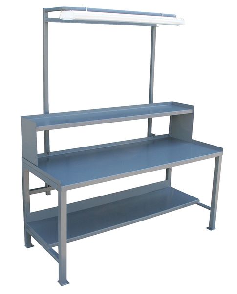 SKU G9830572CategoriesDescription Workbench with Riser, Height Adjustability Fixed Height, Top Material Steel, Assembly Fully Assembled, Color Gray, Frame Material Steel, Leg Type Straight Leg, Maximum Adjustable Height Not Applicable, Minimum Adjustable Height Not Applicable, Non-Metal Top Thickness Not Applicable, Number of Cabinets 0, Number of Drawers 0, Number of Knockouts 0, Included Components Lower Shelf, Power Strip, Side Stops, Storage Bins, Upper Shelf, Number of Outlets 6, Number of Shelves 3, Overall Depth 30 ingraingerSKU: null, mscSKU: null, zoro_no: G9830572, mongo_id: 65bbe5e13aaddbd5a9ff28f4
