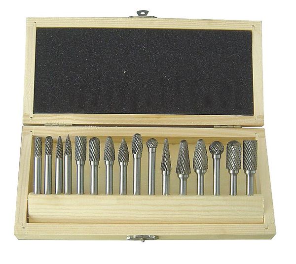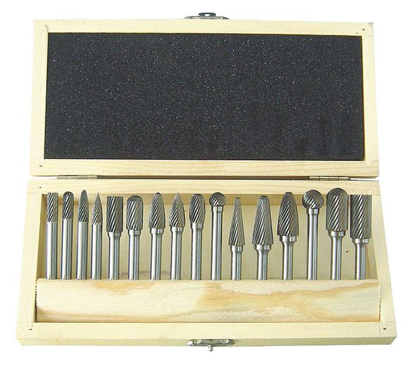 Carbide Bur Set, Dbl Cut, 1/4 In, 16 Pcs
