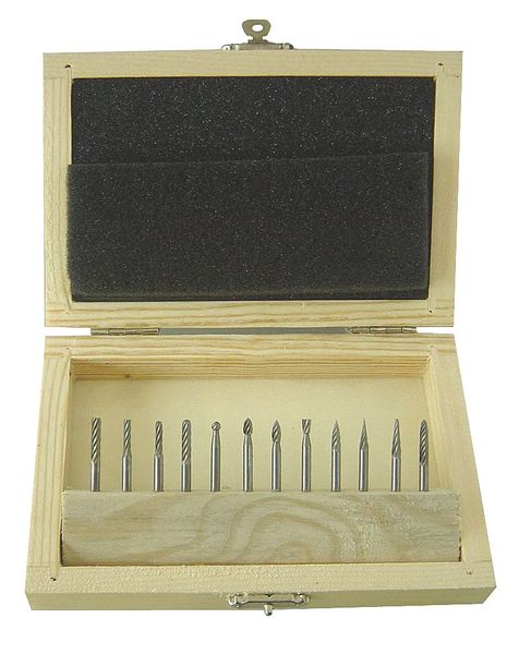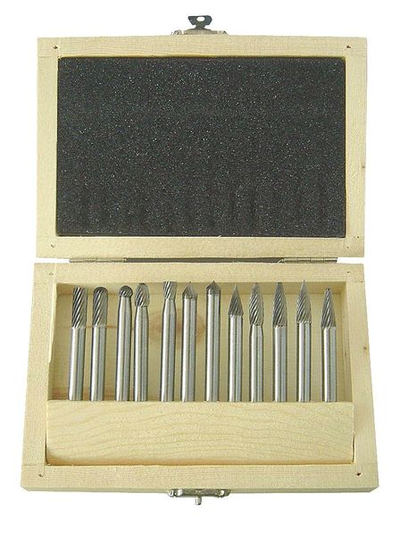 Carbide Bur Set, Dbl Cut, 1/8 In, 12 Pcs