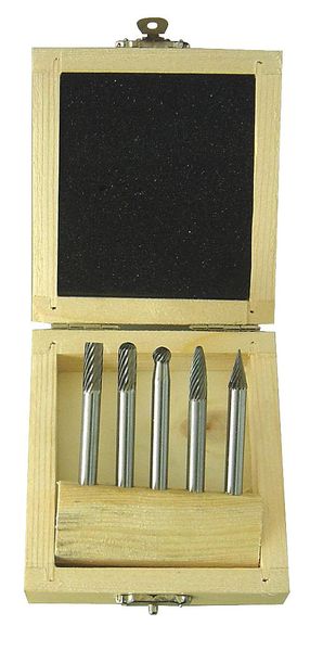 Carbide Bur Set, Single Cut, 1/4 In, 5 Pcs