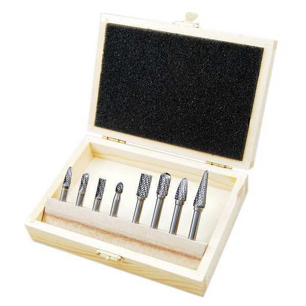 Carbide Bur Set, Dbl Cut, 1/8 In, 9 Pcs