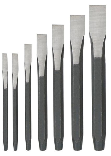 SKU G0822473CategoriesDescription Cold Chisel Set, Set Type Chisel Set, Types Included Chisel, Number of Pieces 7, Blade Tip Shape Straight, Blade Width 1/4 in, 5/16 in, 3/8 in, 1/2 in, 5/8 in, 3/4 in, 7/8 in, Includes Handle No, Chisel Type Chisel, Includes Handguard No, Material Applications For Softer Metal & Wood, Includes 1/2 x 6 in, 1/4 x 5 in, 3/4 x 7 in, 3/8x 5-1/2 in, 5/16 x 5 in, 5/8 x 6-1/2 in, 7/8 x 7-1/2 in, Tip Size 1/4 in, 5/16 in, 3/8 in, 1/2 in, 5/8 in, 3/4 in, 7/8 in, Material Steel, Measurement Type SAEgraingerSKU: 2AJA6, mscSKU: , zoro_no: G0822473, mongo_id: 65bbe6cf3aaddbd5a9055d9e