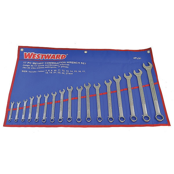 SKU G0786992CategoriesDescription Combination Wrench Set, Alloy Steel, Satin, Number of Tools 17, Range of Head Sizes 7 mm to 27 mm, Head Offset Angle 15 Degrees , Offset, Tool Roll, Metric, 7 mm, 8 mm, 9 mm, 10 mm, 11 mm, 12 mm, 13 mm, 14 mm, 15 mm, 16 mm, 17 mm, 18 mm, 19 mm, 21 mm, 22 mm, 24 mm, 27 mm, Rounded, Opening Angle (Deg.) 15 Degrees$132.49 / eachWeb priceCombination Wrench Set, Satin, 7-27mm, 17PcSKU G0786992CategoriesDescription Combination Wrench Set, Alloy Steel, Satin, Number of Tools 17, Range of Head Sizes 7 mm to 27 mm, Head Offset Angle 15 Degrees , Offset, Tool Roll, Metric, 7 mm, 8 mm, 9 mm, 10 mm, 11 mm, 12 mm, 13 mm, 14 mm, 15 mm, 16 mm, 17 mm, 18 mm, 19 mm, 21 mm, 22 mm, 24 mm, 27 mm, Rounded, Opening Angle (Deg.) 15 Degrees$132.49 / eachWeb price -