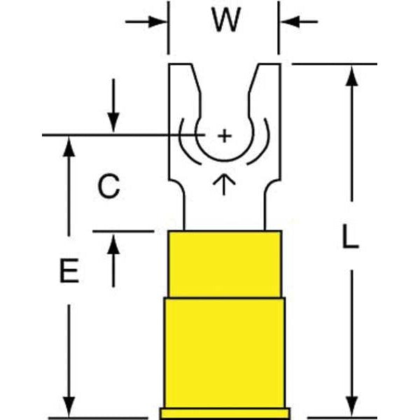 SKU G0915397CategoriesDescription Fork Terminal, Contact Finish Tin, Contact Material Copper, Insulation Color Yellow, Insulation Material Nylon, Maximum Operating Temperature 221 Degrees F, Maximum Voltage 600 V, Maximum Wire Size 10 AWG, Stud Size #10, Termination Style Crimp, RoHS Compliant Yes, Seam Style Butted, Standards CSA Certified, UL Listed, Barrel Length 0.55 in, Barrel Style Insulation Grip, Connection Material Copper, Connection Type Crimp, Minimum Wire Size 12 AWG, Overall Length 1.03 in, Package Quantity 50graingerSKU: 3RWK8, mscSKU: , zoro_no: G0915397, mongo_id: 65bbe81a9a749db8227737d4