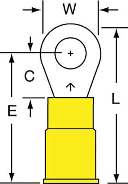 SKU G2844387CategoriesDescription Ring Terminal, Insulation Color Yellow, Insulation Coverage Partial Coverage, Insulation Material Nylon, Maximum Operating Temperature 221 Degrees F, Maximum Voltage 1,000 V, Minimum Wire Size 12 AWG, Maximum Wire Size 10 AWG, Termination Style Crimp, Tongue Width 0.38 in, Contact Finish Tin, Contact Material Copper, Standards CSA Certified, UL Listed, Barrel Inside Diameter 0.14 in, Barrel Length 0.25 in, Barrel Style ButtedgraingerSKU: 5HE61, mscSKU: , zoro_no: G2844387, mongo_id: 65bbe5b43aaddbd5a9fdf473