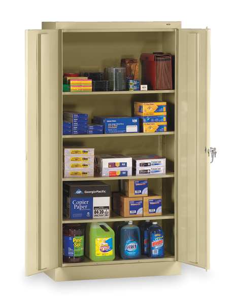 SKU G0237036CategoriesDescription Storage Cabinet, Base Type Frame, Body Panel Type Solid, Cabinet Color Sand, Cabinet Material Steel, Cabinet Storage Components Shelves, Door Handle Type Swing, Door Type Solid, Duty Rating Light Duty, For Use Indoors/Outdoors No, Frame Assembled Unassembled, Load Capacity per Shelf 200 lb, Lock Type Keyed, Mobility Stationary, Mounting Location Freestanding, Number of Shelves 4, Overall Depth 18 in, Overall Height 72 in, Overall Width 36 in, Audit Trail Storage NonegraingerSKU: null, mscSKU: null, zoro_no: G0237036, mongo_id: 65bbe67a3aaddbd5a90310a6