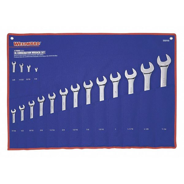Combo Wrench Set, Polish, 1/4-1-1/4in, 17Pc