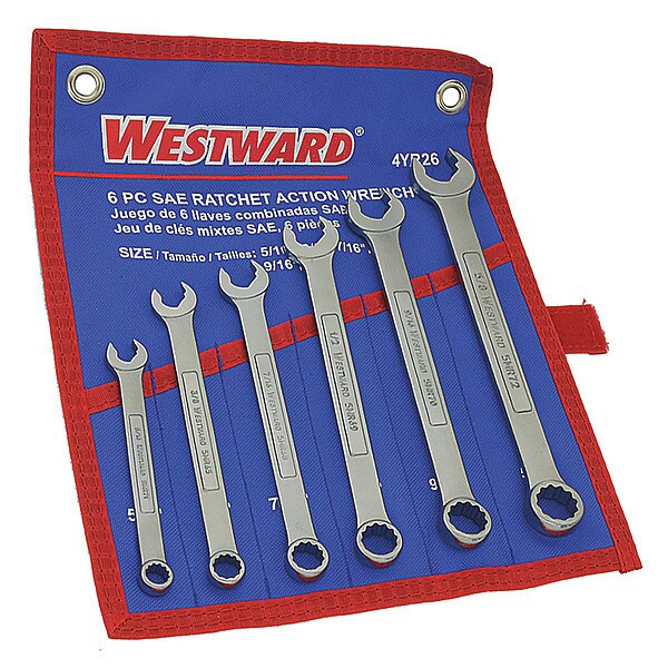 SKU G1392763CategoriesDescription Combination Wrench Set, Alloy Steel, Satin, Number of Tools 6, Range of Head Sizes 5/16 in to 5/8 in, Head Offset Angle 15 Degrees , Offset, Tool Roll, SAE, 5/16 in, 3/8 in, 7/16 in, 1/2 in, 9/16 in, 5/8 in, Speed Style, Opening Angle (Deg.) 15 Degrees$38.74 / eachWeb priceCombo Wrench Set, Ratchet OE, 5/16-5/8, 6PcSKU G1392763CategoriesDescription Combination Wrench Set, Alloy Steel, Satin, Number of Tools 6, Range of Head Sizes 5/16 in to 5/8 in, Head Offset Angle 15 Degrees , Offset, Tool Roll, SAE, 5/16 in, 3/8 in, 7/16 in, 1/2 in, 9/16 in, 5/8 in, Speed Style, Opening Angle (Deg.) 15 Degrees$38.74 / eachWeb price -
