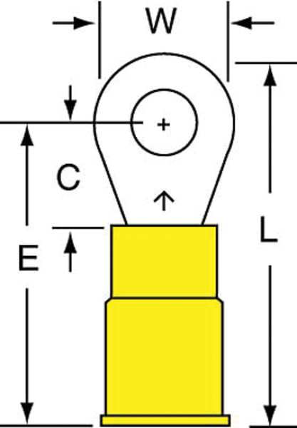 SKU G5806963CategoriesDescription Ring Terminal, Insulation Color Yellow, Insulation Coverage Partial Coverage, Insulation Material Nylon, Maximum Operating Temperature 221 Degrees F, Maximum Voltage 1,000 V, Minimum Wire Size 12 AWG, Maximum Wire Size 10 AWG, Termination Style Crimp, Tongue Width 0.38 in, Contact Finish Tin, Contact Material Copper, Standards CSA Certified, UL Listed, Barrel Inside Diameter 0.14 in, Barrel Length 0.25 in, Barrel Style ButtedgraingerSKU: 2JLU8, mscSKU: , zoro_no: G5806963, mongo_id: 65bbe70b3aaddbd5a906ec81