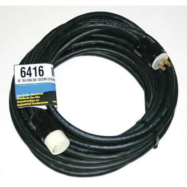 SKU G4406351CategoriesDescription Extension Cord, Location Outdoor, Cord Length 50 ft, Wire Size 10 AWG, Max. Amps 30 A, Voltage 125/250V AC, Plug Configuration NEMA L14-30P, Receptacle Configuration NEMA L14-30R, Cord Ending Single Connector, Number of Outlets 1, Jacket Color Black, Jacket Material Rubber, Trade Designation SOW, Cord Shape Round, Temp. Rating -40 Degrees to 194 Degrees F, Number of Conductors 4, Power Indicator No, Plug Style Straight, Nominal Outside Dia. 0.72 ingraingerSKU: 14N229, mscSKU: , zoro_no: G4406351, mongo_id: 65bbea4a22d7a989a99a5f99