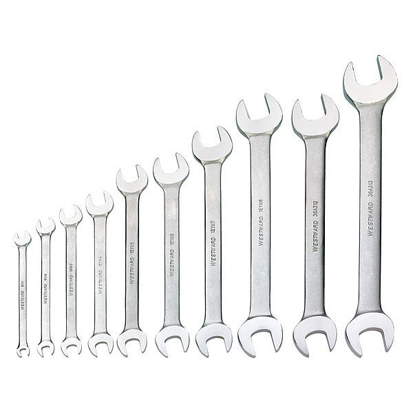 $97.36 / eachWeb priceDouble Open End Wrench Set, SAE, 10 PcSKU G5095352CategoriesDescription Open End Wrench Set, Alloy Steel, Satin, Number of Tools 10, Range of Head Sizes 1/4 in to 1 1/8 in, 15 Degrees , Insulated No, Canvas Pouch, SAE, Double End, Rounded, One Piece, 4 15/16 to 11 1/2 ingraingerSKU: 36A314, mscSKU: , zoro_no: G5095352, mongo_id: 65bbee31526e052139af52c0