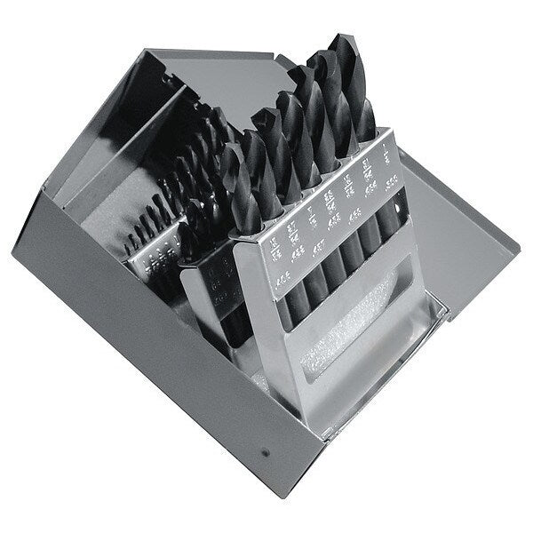 SKU G3374240CategoriesDescription Screw Machine Drill Bit Set, Number of Drill Bits 29, 135 Degrees Drill Bit Point Angle, High Speed Steel, Black Oxide, Drill Bit Sizes Included 1/16 in, 1/2 in, 1/4 in, 1/8 in, 11/32 in, 11/64 in, 13/32 in, 13/64 in, 15/32 in, 15/64 in, 17/64 in, 19/64 in, 21/64 in, 23/64 in, 25/64 in, 27/64 in, 29/64 in, 3/16 in, 3/32 in, 3/8 in, 31/64 in, 5/16 in, 5/32 in, 5/64 in, 7/16 in, 7/32 in, 7/64 in, 9/32 in, 9/64 in, Fractional Inch, Drill Bit Point Type Split PointgraingerSKU: , mscSKU: , zoro_no: G3374240, mongo_id: 65bbe6653aaddbd5a9029592
