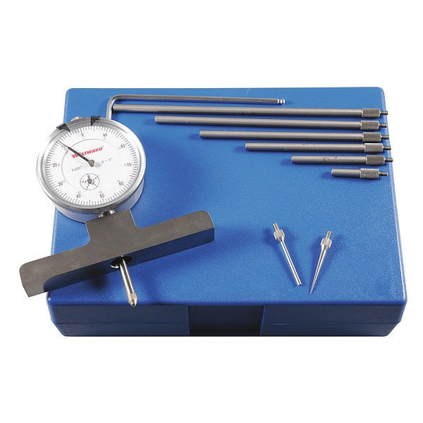 SKU G2107052CategoriesDescription Dial Depth Gauge, Range 0 in to 22 in, Accuracy +/-0.001 in, Long Form Calibration Certificate No, Actuation Style Plunger, Base Length 4 in, Base Style Full, Coolant Resistant No, Dial Position Top, Dimension Type Inch, Number of Measuring Rods 6, Operation Type Mechanical, Range per Revolution 0.1 in, Blade Material Steel, Blade Width 0.177 in, Case Included Yes, Contact Point Material Carbide, Contact Point Shape Ball, Depth Gauge Type Interchangeable-Rod Depth Gauge, Dial Color WhitegraingerSKU: 4KY23, mscSKU: , zoro_no: G2107052, mongo_id: 65bbe73d3aaddbd5a9082d58