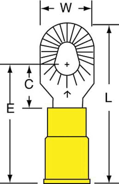 SKU G6163613CategoriesDescription Ring Terminal, Insulation Color Yellow, Maximum Operating Temperature 221 Degrees F, Maximum Voltage 1,000 V, Minimum Wire Size 12 AWG, Maximum Wire Size 10 AWG, Termination Style Crimp, Tongue Width 0.53 in, Contact Material Copper, Standards CSA Certified, UL Listed, Overall Length 1.26 in, Package Quantity 25graingerSKU: 25AZ90, mscSKU: , zoro_no: G6163613, mongo_id: 65bbe81522d7a989a98d779d
