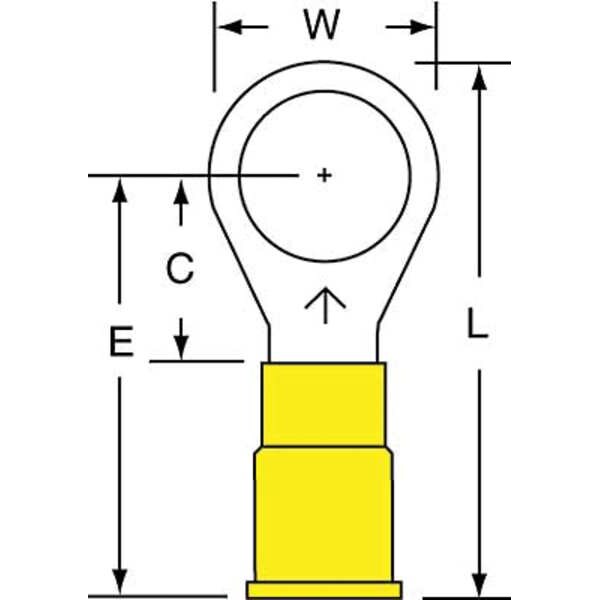 SKU G5779627CategoriesDescription Ring Terminal, Insulation Color Yellow, Maximum Operating Temperature 221 Degrees F, Maximum Voltage 600 V, Minimum Wire Size 12 AWG, Maximum Wire Size 10 AWG, Termination Style Crimp, Tongue Width 0.53 in, Contact Material Copper, Standards CSA Certified, UL Listed, Overall Length 1.26 in, Package Quantity 500graingerSKU: 2JLW9, mscSKU: , zoro_no: G5779627, mongo_id: 65bbe6823aaddbd5a903579d