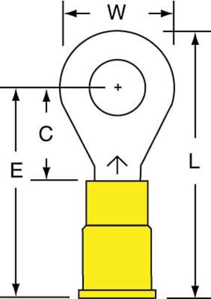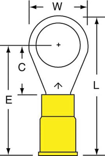 SKU G5776075CategoriesDescription Ring Terminal, Insulation Color Yellow, Maximum Operating Temperature 221 Degrees F, Maximum Voltage 600 V, Minimum Wire Size 12 AWG, Maximum Wire Size 10 AWG, Termination Style Crimp, Tongue Width 0.39 in, Contact Material Copper, Standards CSA Certified, UL Listed, Overall Length 1.19 in, Package Quantity 500graingerSKU: 2JLW1, mscSKU: , zoro_no: G5776075, mongo_id: 65bbe7c49a749db822756da9